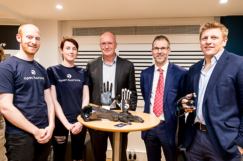 Pictured (from left to right): Joel Gibbard, CEO at Open Bionics; Samantha Payne, COO at Open Bionics; Simon Bond, Innovation Director at SETsquared; Frank Ratcliff, Senior Project Manager at Wessex AHSN; Nigel Clarke, CEO at Morgan Innovation and Technology