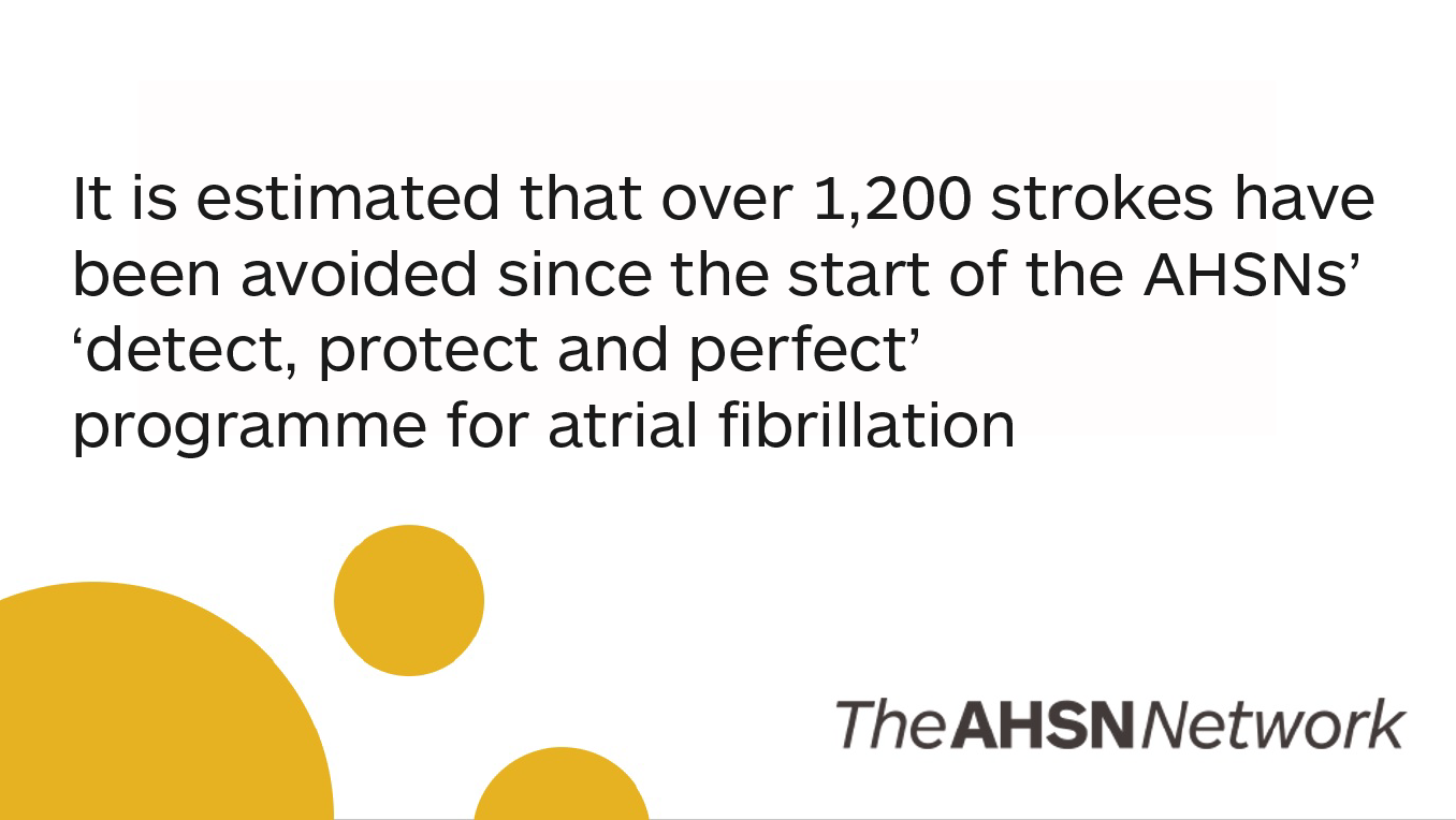 A national programme was set up in 2017 by NHS England and Public Health England to tackle the issue of AF-related strokes. As part of this programme, the 15 Academic Health Science Networks (AHSNs) across England made AF a priority across the board, with the aim to ‘detect, protect and perfect’: