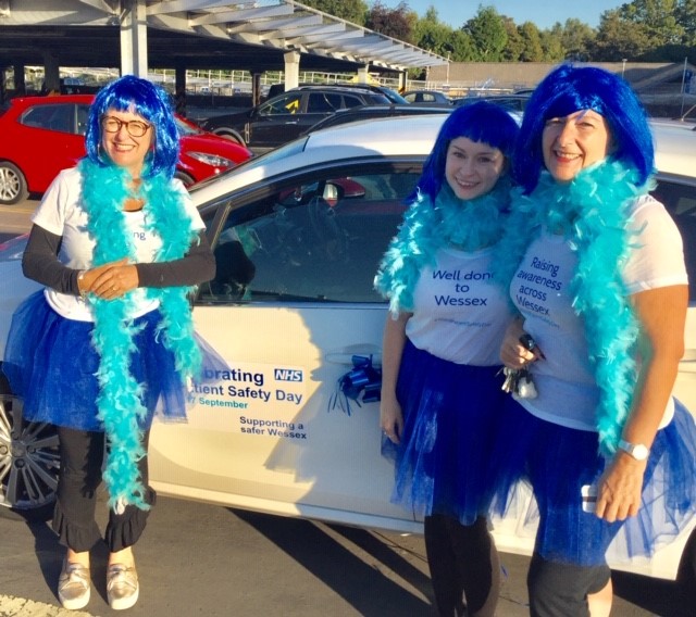 Dressed in blue tutus, wigs and feather boas, a few of the Patient Safety Collaborative (PSC) team toured Wessex, awarding prizes to teams that have been nominated by their organisational patient safety leads in celebration of the World Health Organisation’s (WHO) World Patient Safety Day on Tuesday, 17 September.