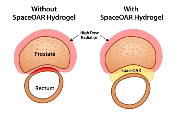 Known as SpaceOAR hydrogel, it reduces the amount of radiation that can pass through the prostate and damage the rectum during treatment.