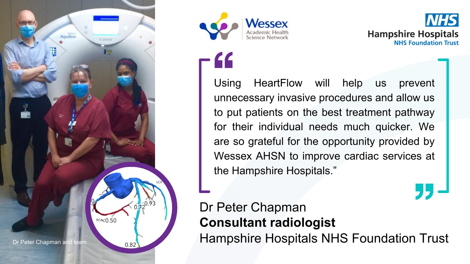 “HeartFlow is a perfect example of one of these innovations and we’re thrilled to see it being put to such great use by our colleagues at Hampshire Hospitals.”
