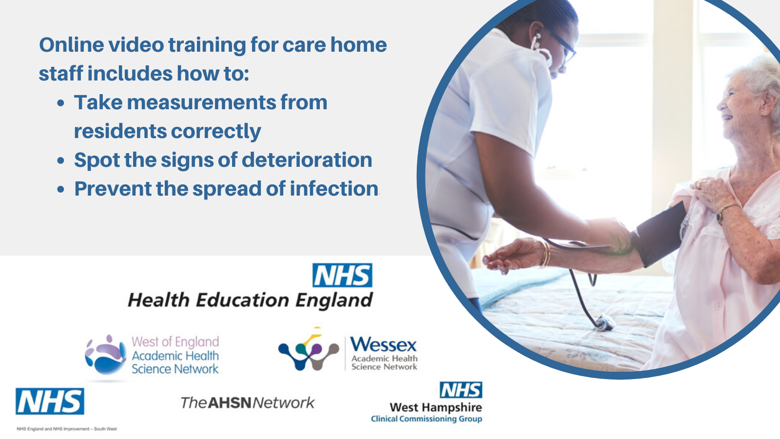 A collaboration by Wessex and the West of England Academic Health Science Networks (AHSNs) and Hampshire, Southampton and Isle of Wight CCG, and funded by Health Education England, the short videos describe how to take measurements from residents, spot signs of deterioration and prevent the spread of infection.