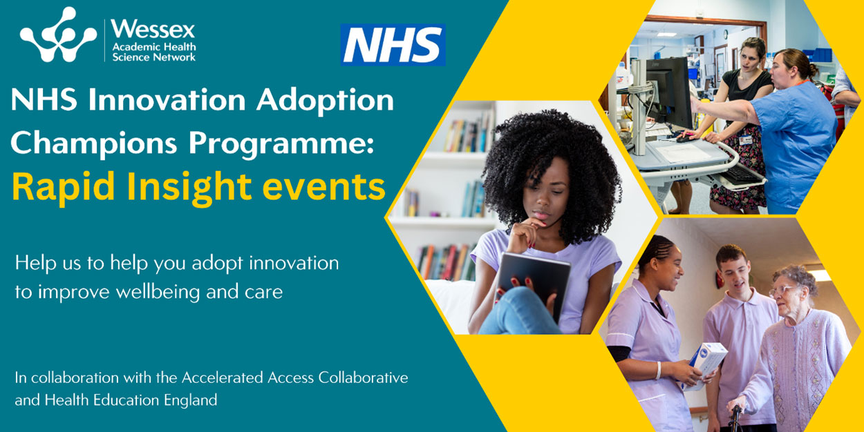 NHS England’s Innovation, Research and Life Sciences (IRLS) team/Health Education England is working with Wessex Academic Health Science Network and other partners to scope and develop a national education programme to enhance innovation adoption and empower a culture of innovation across the health, social care and voluntary workforce. Your experiences and insights are important to us, and we would be delighted if you could find time to join us online for a rapid insight event designed to be completed in just one hour, as we appreciate the many competing demands on your time. We are running the same session on two separate dates, to give you options to attend.