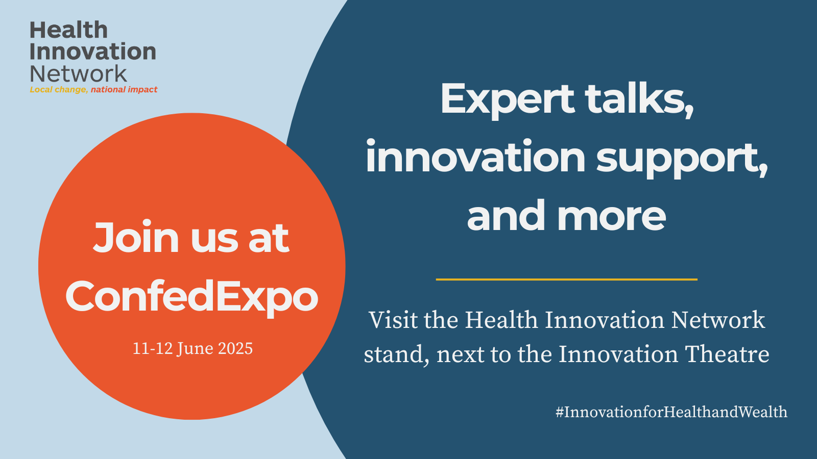 The Health Innovation Network will be exhibiting once again at this year’s NHS ConfedExpo, taking place at Manchester Central on Wednesday 11 and Thursday 12 June.