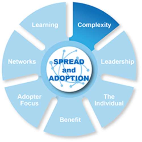 The model describes how complexity can exist in the innovation, the context, and the approach taken to spread and adoption.